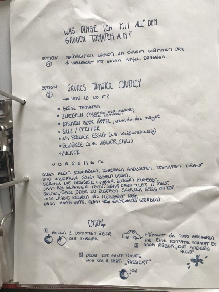 diese Woche gibts voraussichtlich die letzten Tomaten. Grüne Tomaten könnt ihr ja bis Mittwoch bei eurem Depotverantwortlichen bestellen und die leiten Eure Wünsche an mich weiter.
